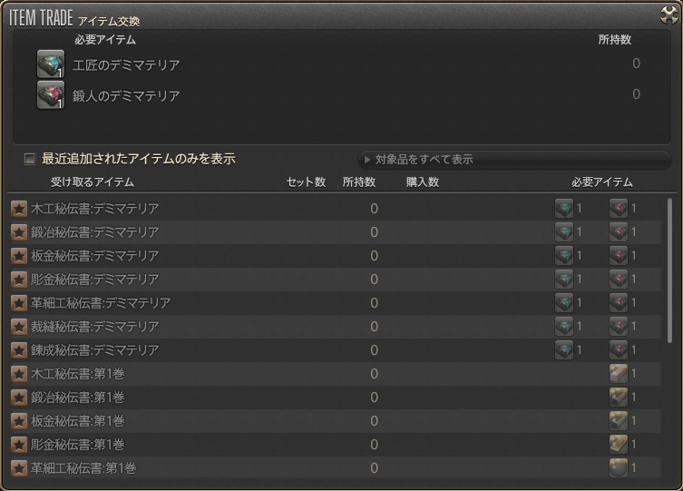 工匠のデミマテリア 鍛人のデミマテリア を使用して秘伝書を覚えさせてください。